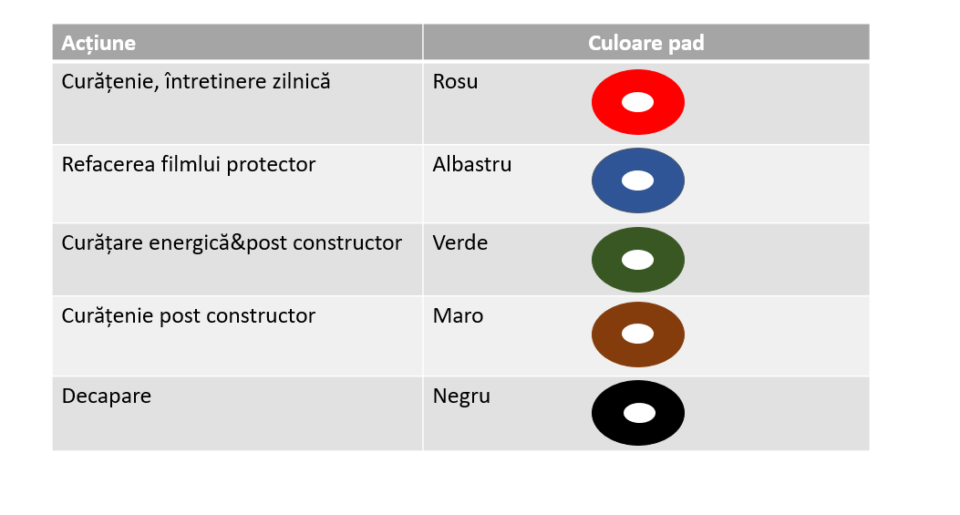 - Pornind de la alb spre negru crește duritatea padului. Astfel în funcție de pardoseală și tipul lucrării alegeți culoarea potrivita. Asigura o curatare eficienta impotriva tuturor murdariilor de pe suprafete