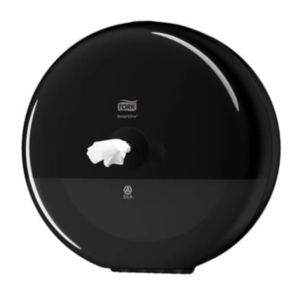 Dispenserul de hartie igienica Tork SmartOne negru 680008 este solutia optima pentru toaletele cu trafic intens, datorita capacitatii sale mari, de 1150 de portii.