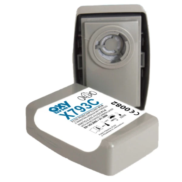 Filtru de particule cu capsulă X793C P3 R, Oxyline, cu carbon activ, pentru masca OXY-X8 si semi-masca OXY-X6, 2 buc/set