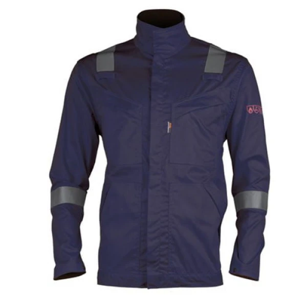 Jachetă multi-risc THOR , albastru inchis, antistatica, ignifuga, cu protectie impotriva arcului electric si a stropilor de chimicale, cu benzi reflectorinzate