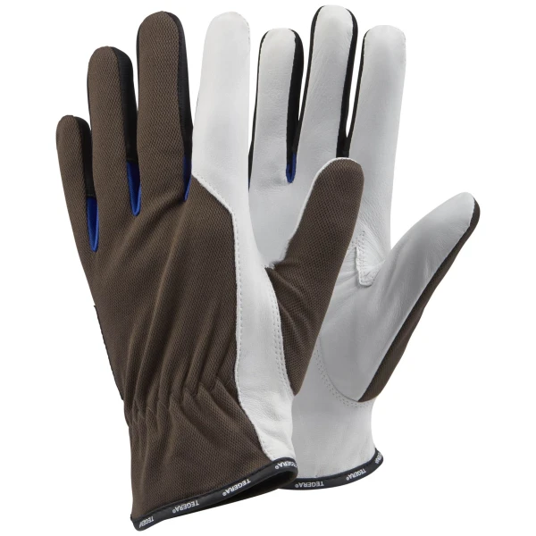 Mănuși de asamblare pentru manipulări medii tegera 164 , din poliester, grad protectie cat. ii, marimi 7 – 11, culoare gri,albastru,negru,alb