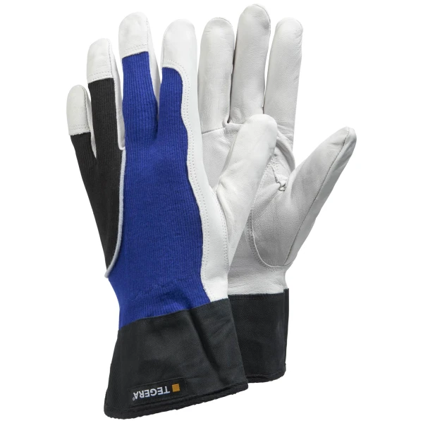 Mănuși de asamblare pentru manipulări ușoare tegera 14 , din bumbac, grad protectie cat. ii, marimi 7 – 11, culoare albastru,negru,alb