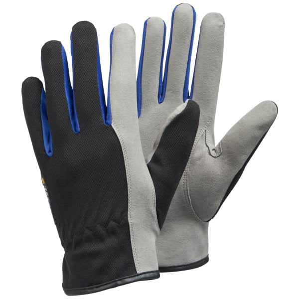 Mănuși de asamblare pentru manipulări ușoare tegera 325 , din poliester, grad protectie cat. ii, marimi 4 – 13, culoare negru,gri,albastru