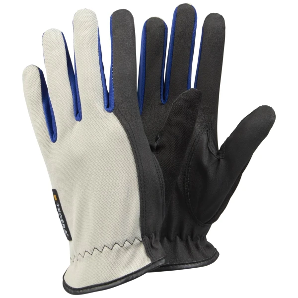 Mănuși de asamblare pentru manipulări ușoare tegera 5114 , din poliester, grad protectie cat. ii, marimi 6 – 11, culoare gri,negru,albastru