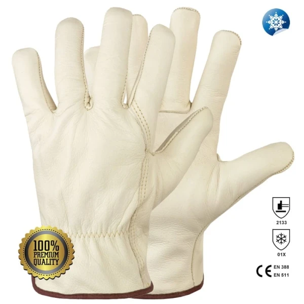 Manusi din piele de bovina complet captusite cu molton, calduroase si potrivite pentru zilele reci. Au manseta tivita iar dosul mausilor are elastic pentru fixare.