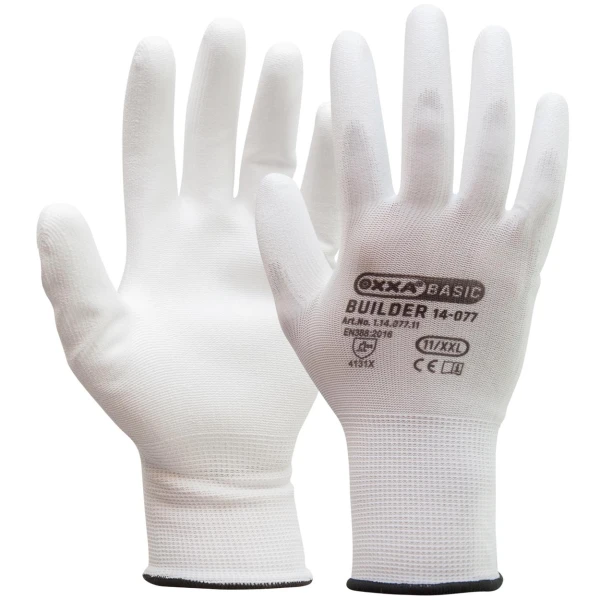 Manusi de protectie OXXA Builder 14-077, PU, alb, 7-11, din poliester, cu manseta elastica