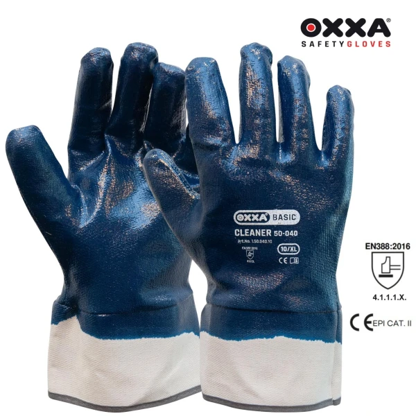 Manusile de protectie OXXA Cleaner 50-040, sunt manusi complet imersate in nitril, ce asigura aderenta si protectie sporita la obiecte ascutite si sunt rezistente la uzura.