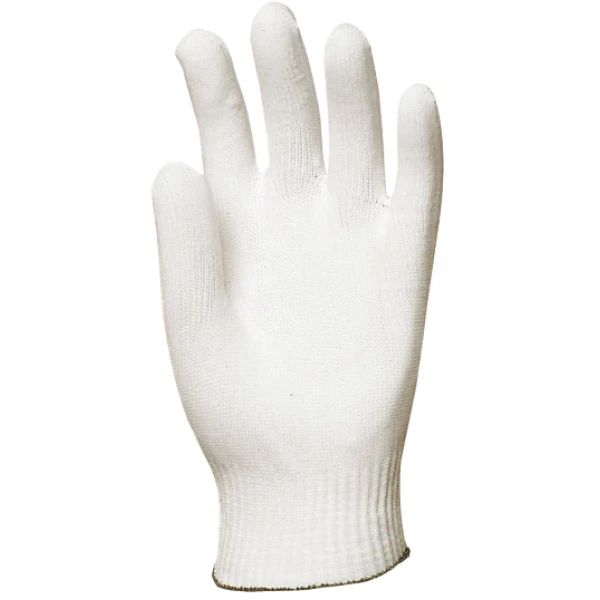 Manusi de protectie, subtiri, din poliester alb, cu tricotare elastica, fara imersie, cu rezistenta mare la tractiune