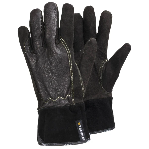 Mănuşi rezistente la tăiere pentru manipulări medii tegera 32 , din piele naturală de bovine, grad protectie cat. ii, marimi 7 – 13, culoare maro,negru