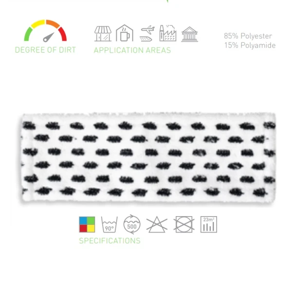 Mop din microfibra, alb-negru, Spot, 40 x 11 cm, conform HACCP, pentru curatare si dezinfectare, fixare cu velcro, scai