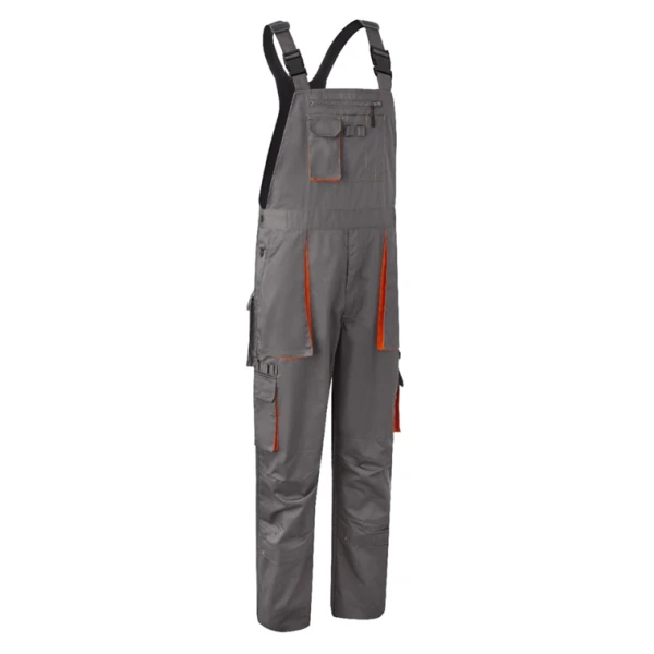 Pantaloni de lucru cu pieptar, Navy / Paddock II, gri-portocaliu, 60% bumbac/40% poliester – 245g/m², buzunare multiple, rezistenti la uzura, genunchi preformati, Coverguard