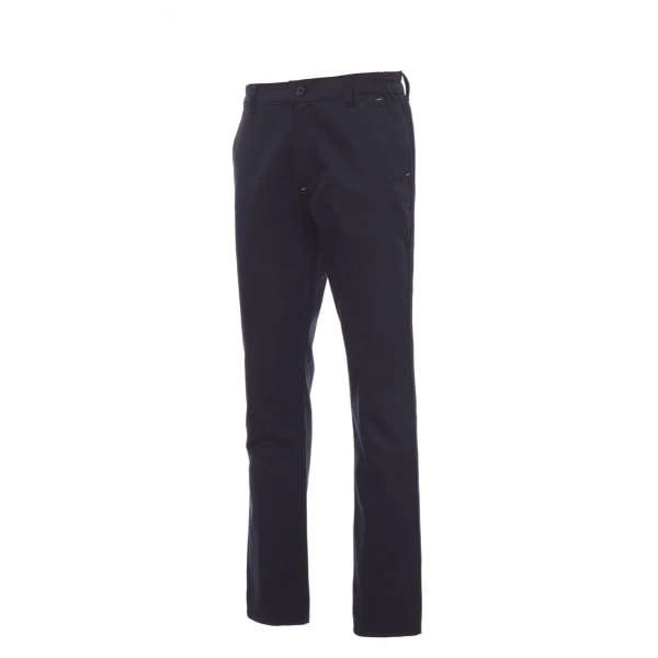 Pantaloni talie de lucru unisex cu croiala moderna, cusaturi triple, confectionati dintr-un material textil usor de tip ripstop din bumbac 100%. Prevazuti cu talie elastica si gaici de prindere a curelei, inchidere frontala cu nasture si fermoar. Echipati cu doua buzunare clasice in fata si un buzunar la spate cu clapa si inchidere cu scai velcro. Confortabili si usori, potriviti pentru zilele mai calduroase.