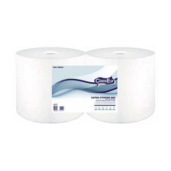 Rola hartie industriala alba, 2 str., 100% celuloza, 800 lavete/rola, 2 role/bax