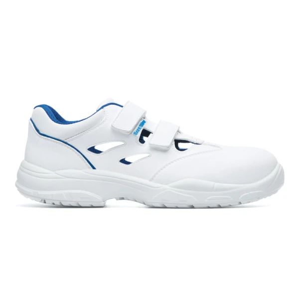 Sandale albe de protectie S1 SRC cu bombeu nemetalic din policarbonat si fete din microfibra respirabila. Captuseala din material textil rezistent la abraziune si acoperisul de brant X-dry asigura confortul si aerisirea piciorului. Talpa este injectata, din poliuretan monodensitate.