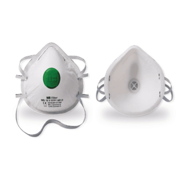 Semi-masca de unica folosinta cu supapa de respiratie, clasa FFP1, cu 3 straturi de protectie, reglare rapida si usoara. Prevazuta cu o valva de expiratie care permite aerului expirat să iasa rapid in afara semi-mastii reducand astfel rezistenta expiratiei si scazand temperatura si umiditatea din interiorul semi-mastii. Ofera protectie respiratorie impotriva particulelor solide sau aerosoli pe baza de apa (praf, fum) si lichide (cețuri), atât timp cât concentrația fazei dispersate dintre acești aerosoli în aer nu este mai mare de 10 x OEL. Semi-masca este in forma de cupa, cu clema nazala ajustabila si benzi elastice pentru ajustare. Poate fi utilizata in medii de lucru cum ar fi: constructii, prelucrarea lemnului, agricultura, industria alimentara, prelucrarea cerealelor, lucrul cu pilitura de metal feros, productia de ceramica etc.