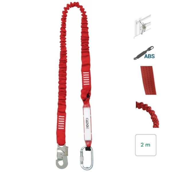 Sistem anticadere cu absorbant de soc, din coarda elastica 2m, CADO ENERGY-R, echipata cu o carabina cu filet AZ011 si un carlig cu arc AZ002