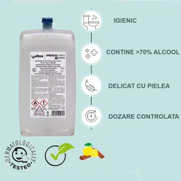 Fii primul care adauga o recenzie la „Solutie igienizare colac WC, pe baza de alcool, Celtex E-control 89070, 800 ml, pentru dozatoare cu senzor Celtex 95590”